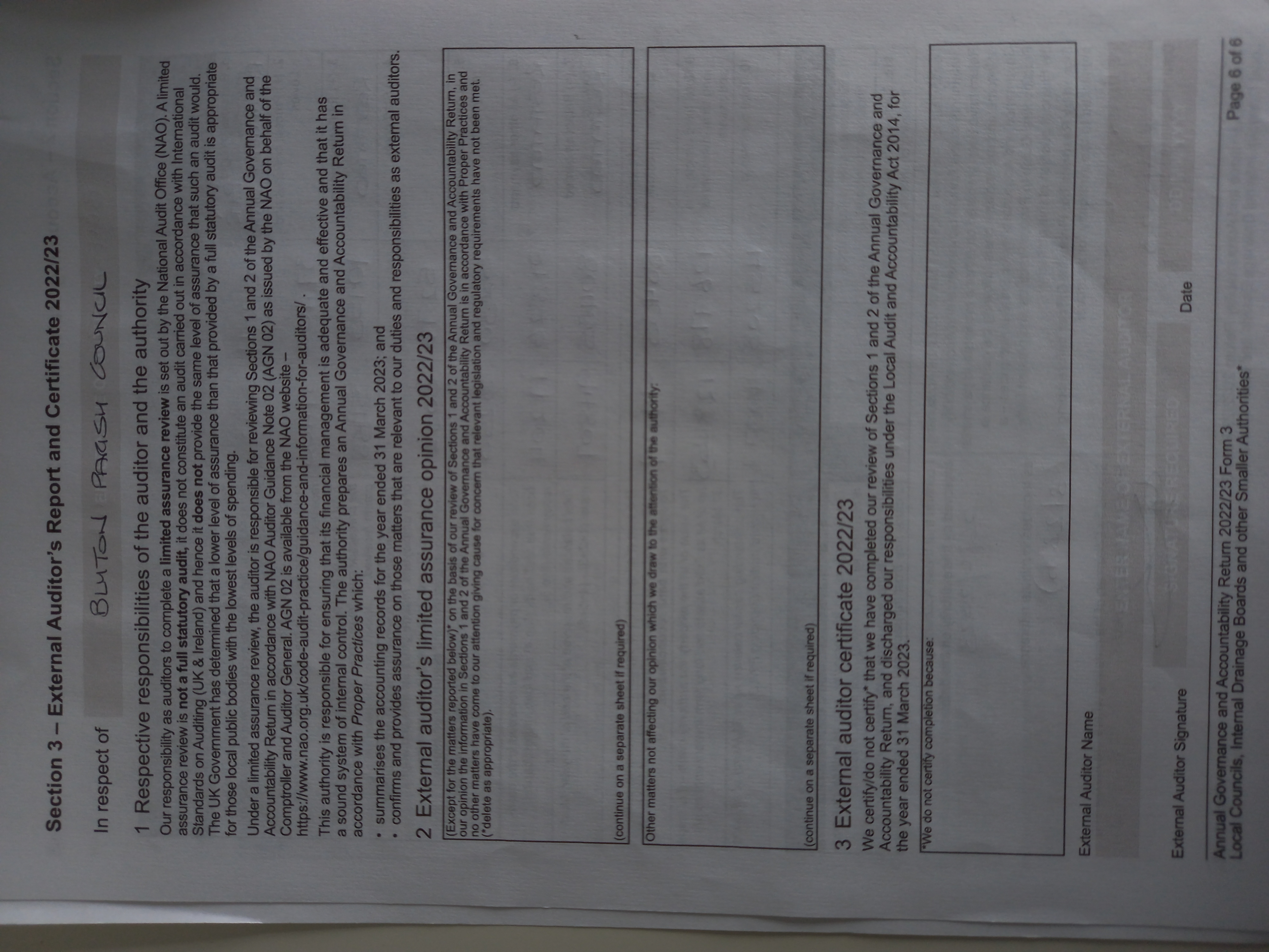 External Auditor's Report and Certificate